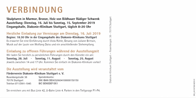 G r o ß e A u s s t e l l u n g meiner Skulpturen im Diakonissen Klinikum in Stuttgart ab 16. July bis 15. September 2019 !
